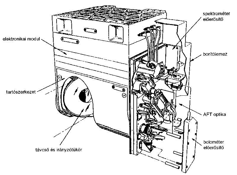 Ha lehet egyáltalán rangsorolni, a legfontosabb tudományos mûszer az MGS felszínén a termálemissziós spektrométer. Ez az eszköz egy infravörös színképelemzõ, amely a felszín sugárzásának 6 és 50 mm közé esõ részét analizálja (hõsugárzás). Bár több, mint 30 éve vizsgálják ûrszondák a Marsot, még mindig nem tudjuk pontosan, milyen kõzetek és ásványok alkotják a felszínt. Pedig ezek ismerete alapvetõen befolyásolja a bolygó geológiai történetére vonatkozó elképzeléseket. A mészkõ felfedezése például egykori tavak vagy tengerek meglétét bizonyítaná. A kõzetek és ásványok összetétele egyértelmûen meghatározható az infravörös színképük alapján. A TES éppen ezt a tartományt fogja vizsgálni. Fontosságát jelzi, hogy már a szerencsétlen sorsú Mars Observer is magával vitt egy ilyen mûszert. (Csakúgy, mint az MGS többi mûszerét. Ezek lényegében a Mars Observer számára lettek kifejlesztve. Sajnos a szintén igen fontos gammasugár-spektrométer és a nyomás-modulációs infravörös radiométer már nem fért bele az MGS költségvetésébe. Az elõbbi a felszín kémiai összetételét, az utóbbit a légköri hõmérsékletet, vízpára mennyiséget és nyomást mérte volna. Pótlásukról a tervezett Mars-szondák gondoskodnak.)